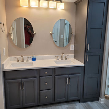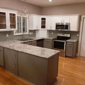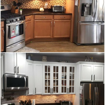 The process takes a week, some factors may change the duration. Day 1, we remove all the doors and drawers in your kitchen. Day 2-3, we work on them offsite in our shop. Day 4, we return to prep your kitchen for painting. Day 5, we return to clean up and hang the doors/drawers. Now it's time for you to enjoy your brand new kitchen!